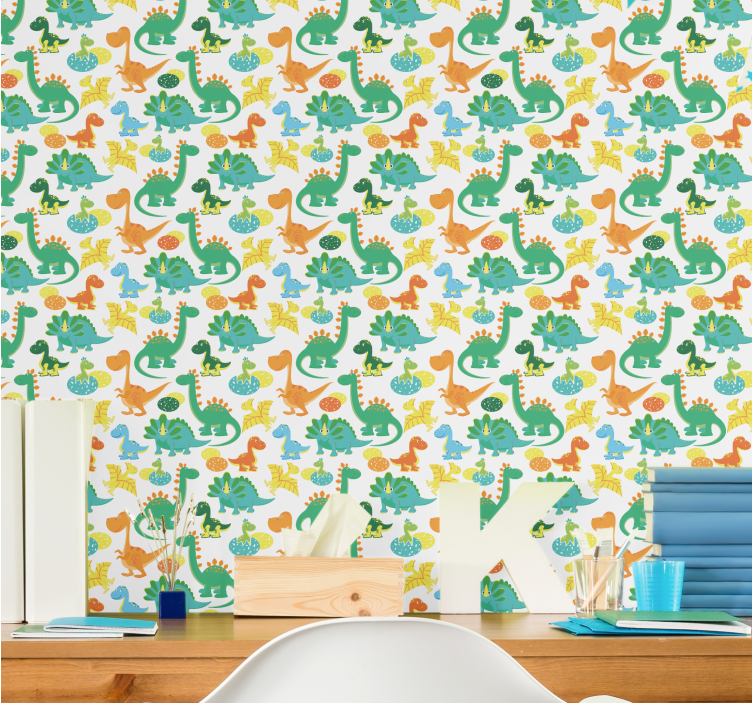 Tyto rozkošné tapeta do dětského pokoje vám pomohou stylizovat vaše stěny jednoduchými, ale roztomilými vzory. Produkt má bílé pozadí, které je pokryto různými druhy malých dinosaurů v mnoha barvách.