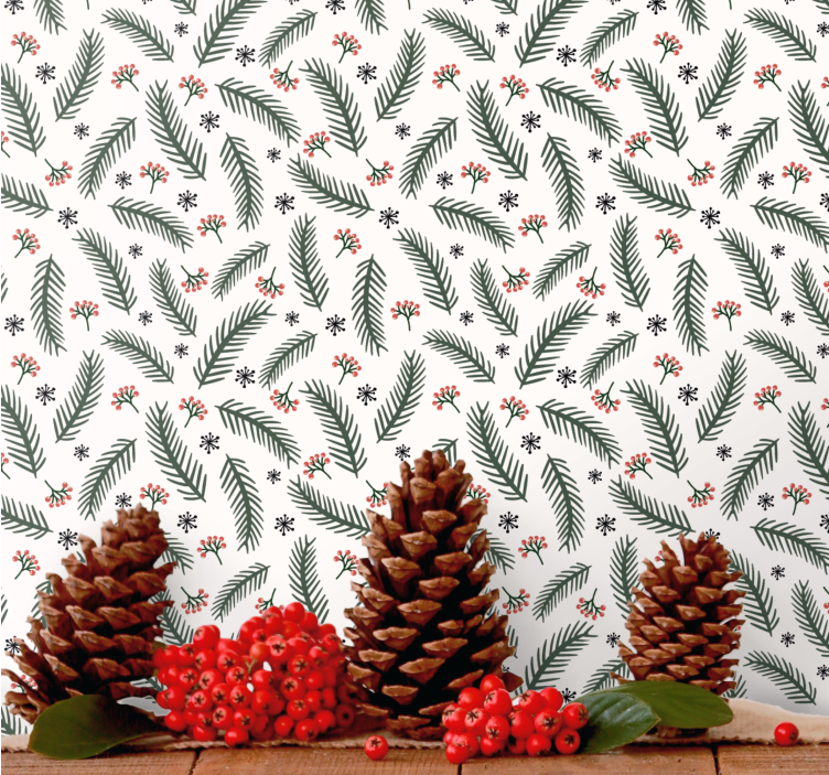 Tato tapeta s vzorem vánočních třešňových plodů s borovými listy je vyráběna na roli. Vyberte si počet rolí, který vyhovuje vašemu prostoru, a objednejte si ji nyní.