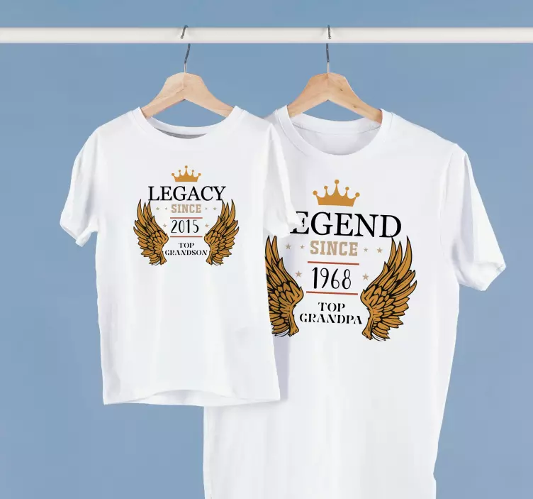 Toto úžasné tričko je perfektní způsob, jak ukázat svou rodinnou hrdost. Design obsahuje korunu s křídly a příslušný text: dědictví od... Nejvyššího vnuka, legenda od... Nejvyššího vnuka. Je přizpůsobitelný s datem dle vašeho výběru. Tento kousek je perfektní košile pro dědečka a vnuka, díky které budou vypadat stylově a jednotně.Proč by se tento produkt měl používat na oblečení?