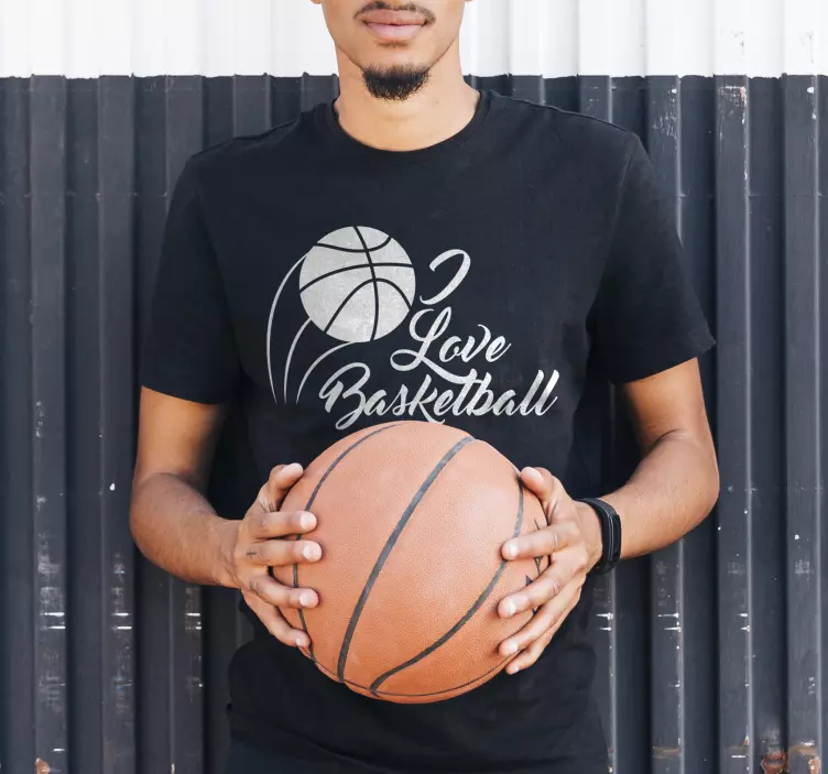 Design pro basketbalisty a fanoušky. Design je textová fráze, která říká „miluji basketbal“, má krásně kaligrafické písmo, je doplněno ručně kreslenou ilustrací basketbalu, basketbal s efektem, má jednobarevný design a umožňuje vám to vychutnat v jiných barevných variantách.