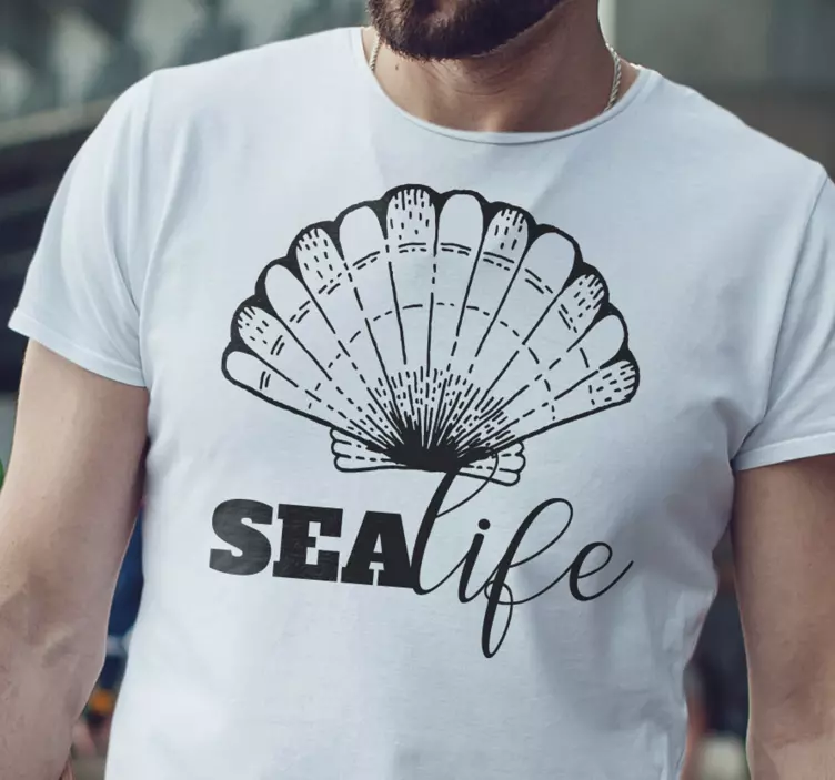 Reference: T5387Tento design obsahuje krásně ilustrovanou mořskou lasturu nad slovem 'SEAlife' v kontrastních stylech. Monochromatická barevná paleta zvyšuje estetickou přitažlivost, což z něj činí ideální kousek pro volnočasové nošení. Perfektní pro nadšence do oceánu a milovníky přírody.
