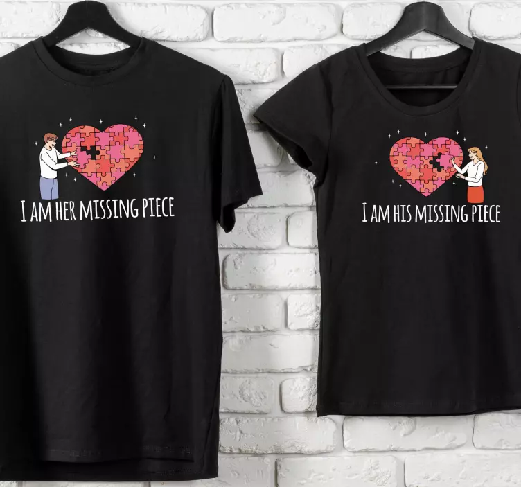 Objevte kouzlo lásky s našimi párovými tričky spojení srdcí jako puzzle! Tento jedinečný design je stvořen pro všechny romantické duše, které chtějí vyjádřit svou lásku a spojení. Trička zobrazují chybějící kousek, který tvoří dokonalý pár – chlapec a dívka, jejichž srdce se spojila jako hádanka. Ideální pro milovníky, kteří chtějí sdílet legrační a romantické chvíle, jsou tato odpovídající trička perfektním způsobem, jak oslavit váš vztah!