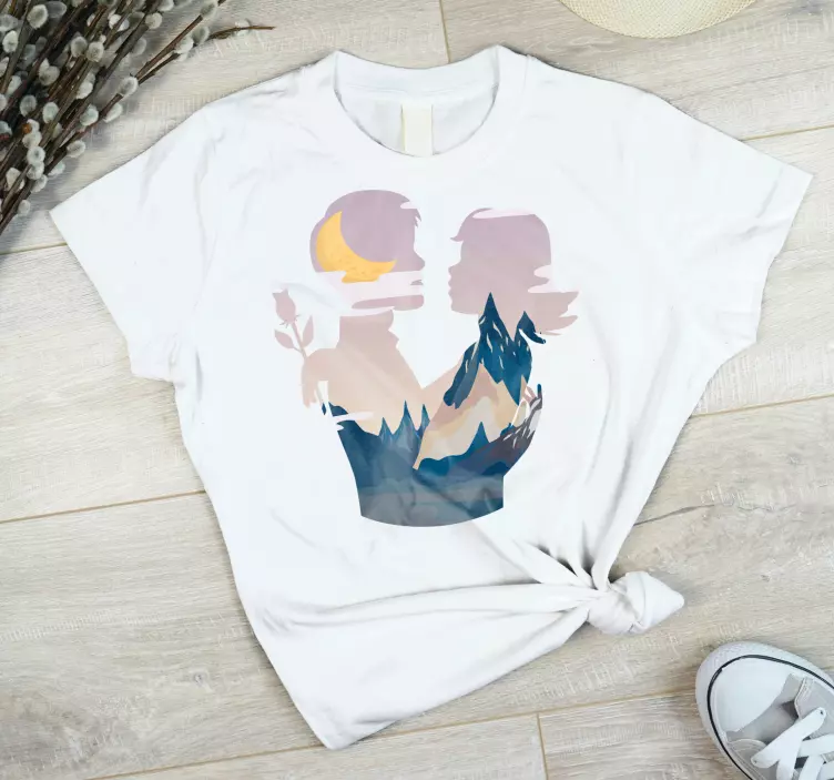 Trička matky a dcery silueta spojení přinášejí jedinečný grafický design, který oslavuje rodinné pouto mezi matkou a dcerou. S prvky jako ilustrace přírody, hory a měsíců, tento design vyzařuje něhu a lásku. Siluety matky a dcery v harmonii s přírodou vytvářejí nádherný vizuální zážitek, který zaujme každého. Tento kousek oblečení je ideální pro ty, kteří chtějí vyjádřit své milovat a spojení se svými blízkými!