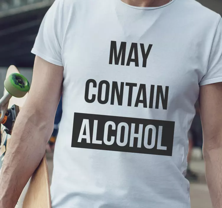 Reference: T4304Tento neformální kousek obsahuje výrazné prohlášení, které s humorem varuje před obsahem alkoholu. Jeho výrazná typografie upoutává pozornost, což z něj činí ideální téma k hovoru na večírcích nebo při neformálních setkáních.