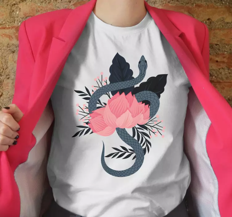 Tričko s motivem hada a květin