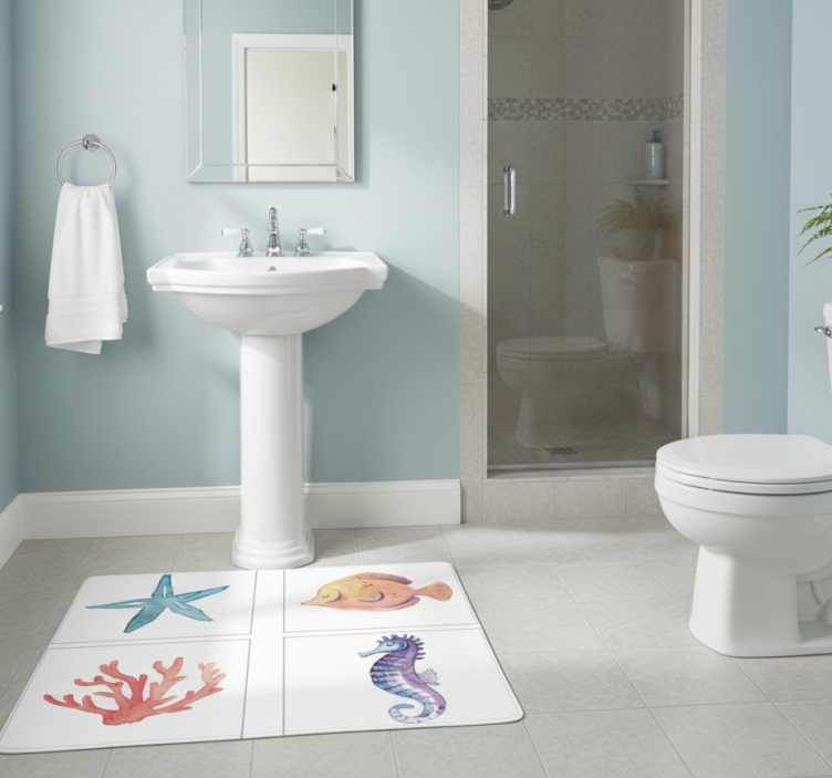 Koupelnový vinylový koberec mořská zvířata Koupelnový vinylový koberec je skvělou volbou pro ty, kteří chtějí oživit svůj interiér. Tento produkt dodá vaší koupelně nádech hravosti a originality. Díky jeho jedinečnému designu se stane středobodem pozornosti a přitáhne pohledy všech návštěvníků. Není jen praktický, ale také výrazně přispívá k celkovému estetickému dojmu vaší koupelny!