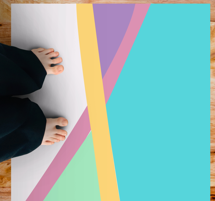 Moderní vinylový koberec barevné abstraktní vrstvy je skvělým příkladem toho, jak umění a design mohou oživit váš interiér. Tento koberec se vyznačuje geometrickými tvary, barevnými pruhy a abstraktním designem, který kombinuje modrozelené a pastelové odstíny. Je to perfektní volba pro ty, kteří chtějí dodat svému prostoru moderní a svěží vzhled!