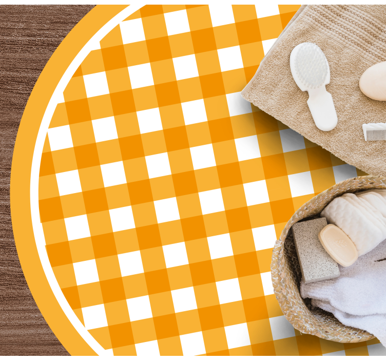 Reference: R19703Živý, teplý kostkovaný vzor se skládá z střídajících se oranžových a bílých čtverců, což vytváří hravý a zároveň útulný efekt. Design je kruhový, obklopený pevným oranžovým okrajem, což přispívá k veselému vizuálu, který vyniká.