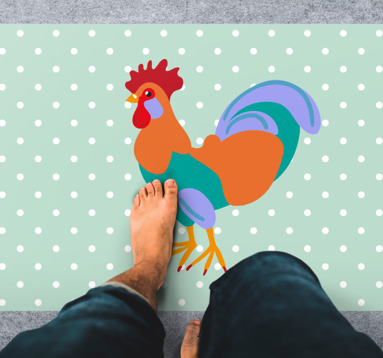 Objevte kouzlo Zvířecího vinylového koberce s živým kohoutím motivem, který přináší do vašeho interiéru radost a hravost! Tento koberec se pyšní půvabným designem, který zahrnuje ilustraci živého kohouta, doplněnou o veselé tečky a puntíky na pozadí. Jeho vibrující a kreslený vzhled přitahuje pozornost a vytváří jedinečnou atmosféru, která dokonale oživí každý prostor. Nechte se unést jeho hravým stylem a přidejte do svého domova kousek radosti!